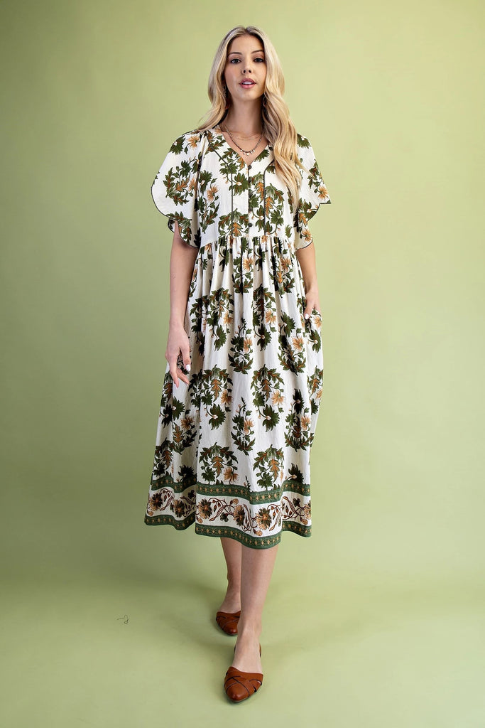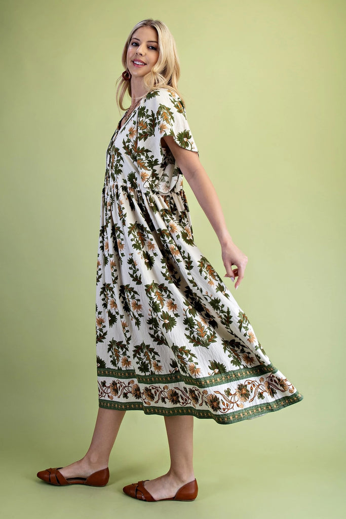 3/4 Sleeve Crepe Chiffon Peasant Dress