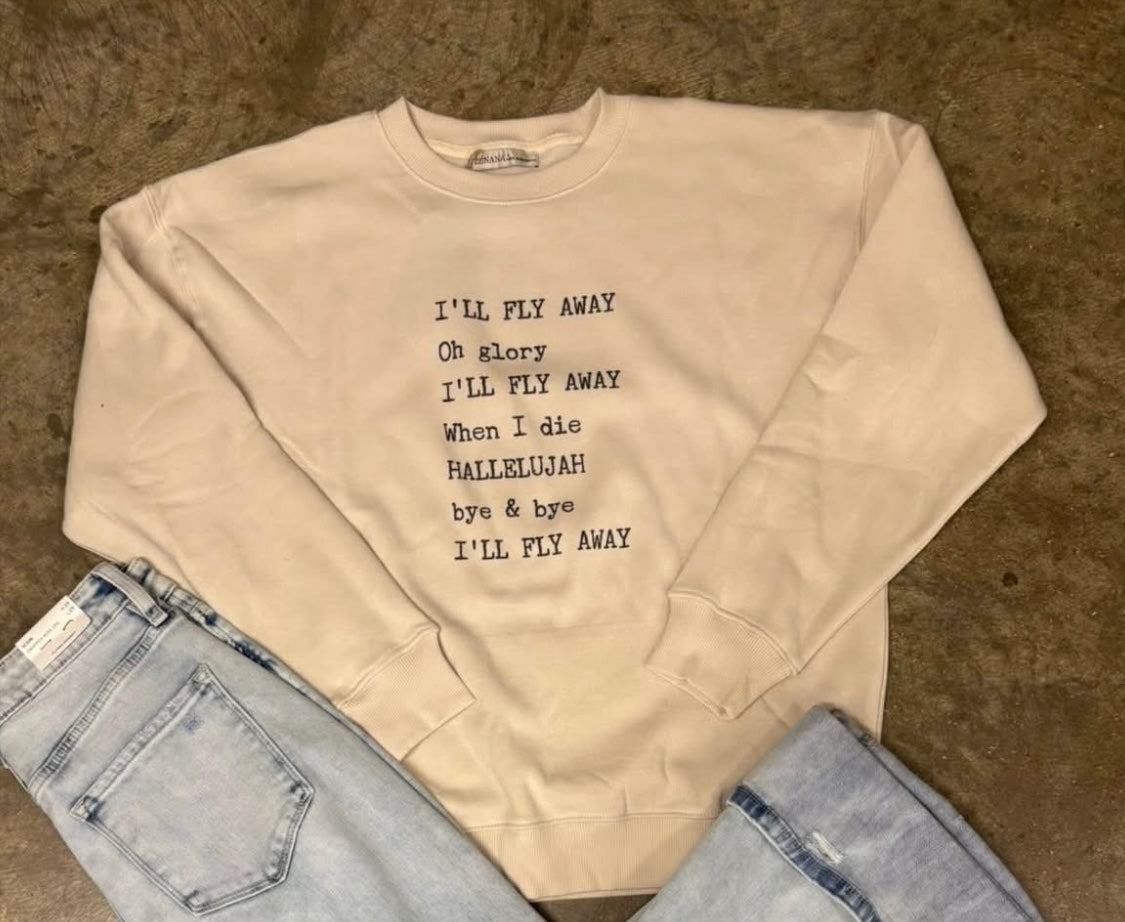 This cozy beige sweatshirt features a casual, relaxed fit with a heartfelt lyric print that celebrates freedom and spiritual joy. Perfect for everyday wear, it pairs effortlessly with light-wash jeans for a laid-back, style-forward look. The soft fabric ensures comfort, making it a staple for cool weather days. Its simple design is elevated by the meaningful text, giving it a touch of personal expression.