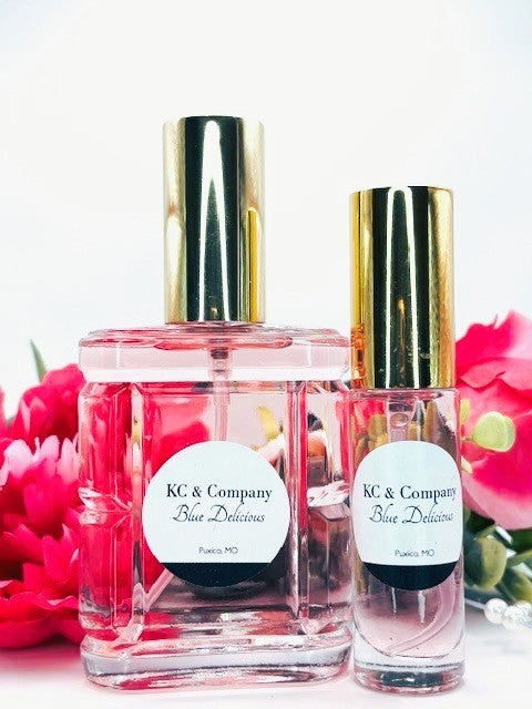These KC & Company perfumes effortlessly blend elegance and freshness. The larger bottle offers a luxurious sense of opulence, while the smaller one is perfect for on-the-go freshness. Both feature clear, sleek glass containers with striking gold caps, conveying sophistication. The scent encapsulates a floral yet subtle aroma that elevates everyday wear. Ideal for those who appreciate understated luxury and timeless style.