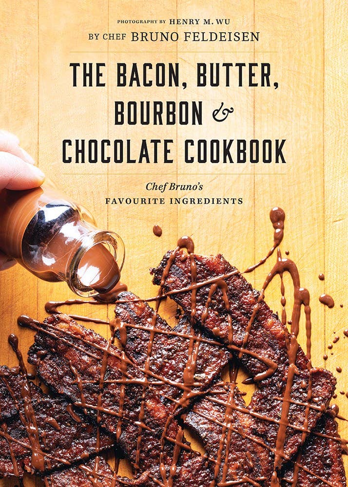 In The Bacon, Butter, Bourbon, and Chocolate Cookbook, Chef Bruno focuses on 4 distinct ingredients to create some of his favourite recipes. Each one of these ingredients is remarkable on its own and together they produce a range of tastes and experiences that all food-lovers are greedy for salty, sweet, silky, chewy.