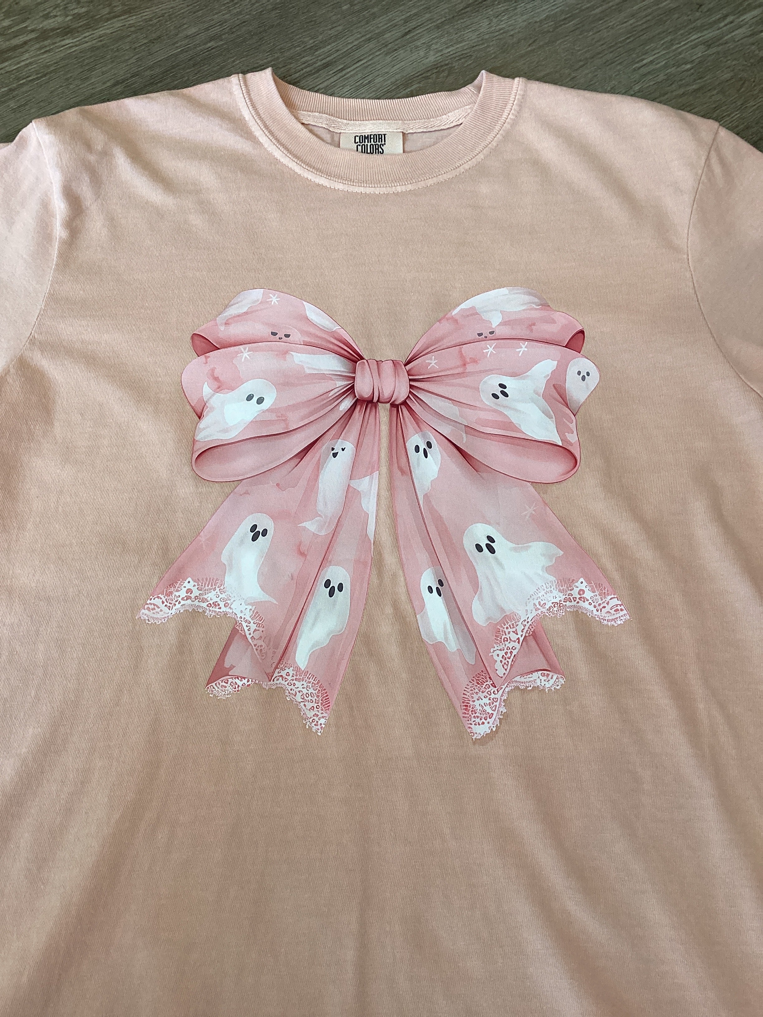 Bow With Ghost Custom Tee - Small is backordered and will ship as soon as it is back in stock.