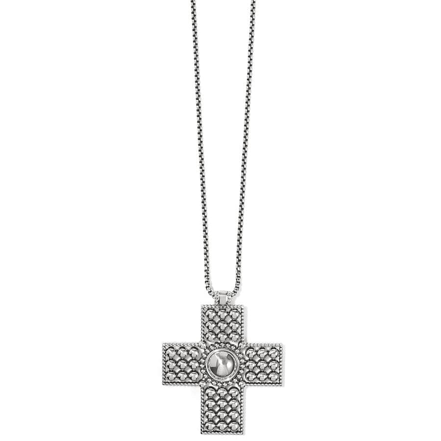 This large cross showcases old world craft with a modern silhouette. Multi shiny smooth sculpted domes over a bold center bead create this cross. Outlined with tiny silver beading which showcases additional artisan details, it’s perfect to wear on its own or layered with other necklaces.