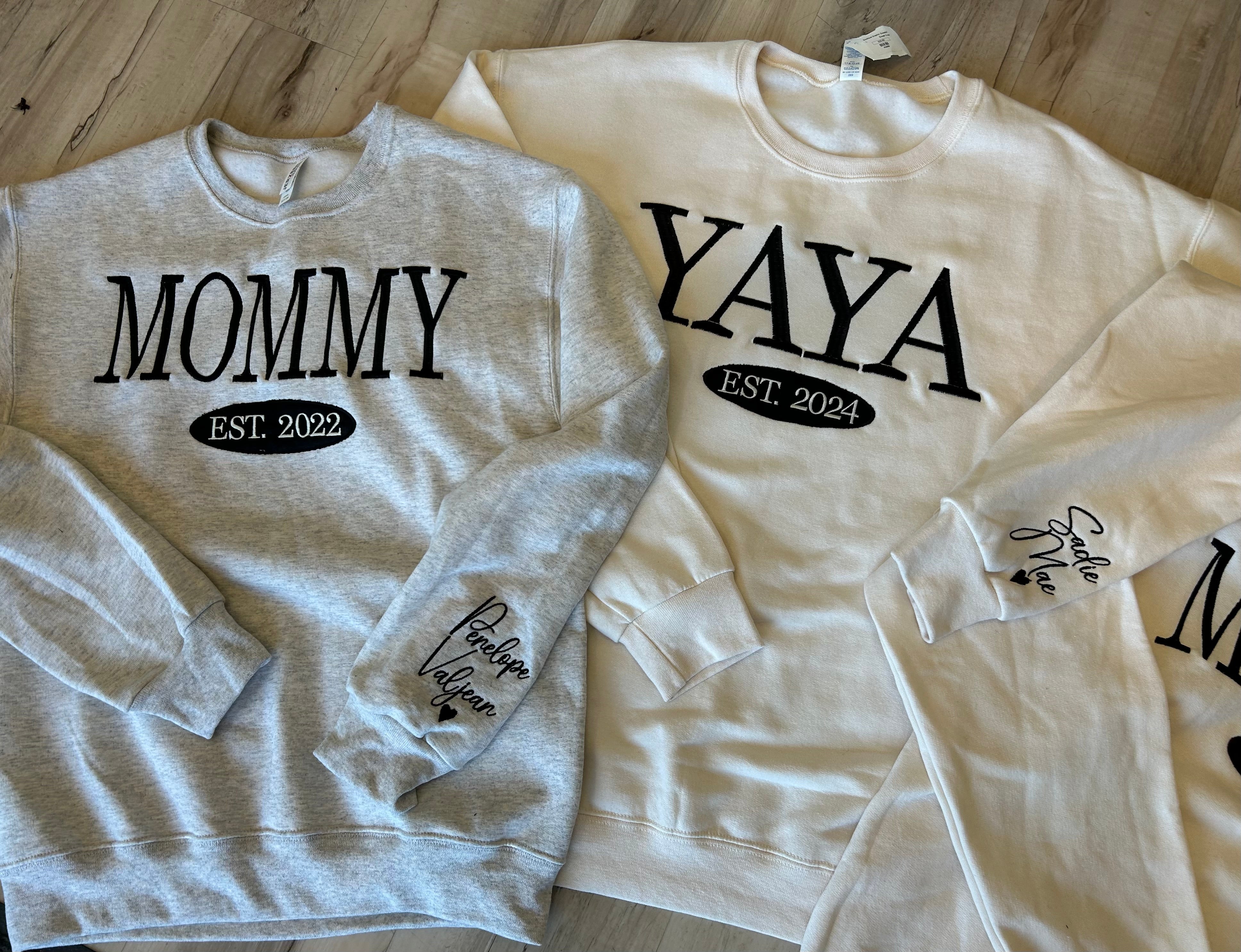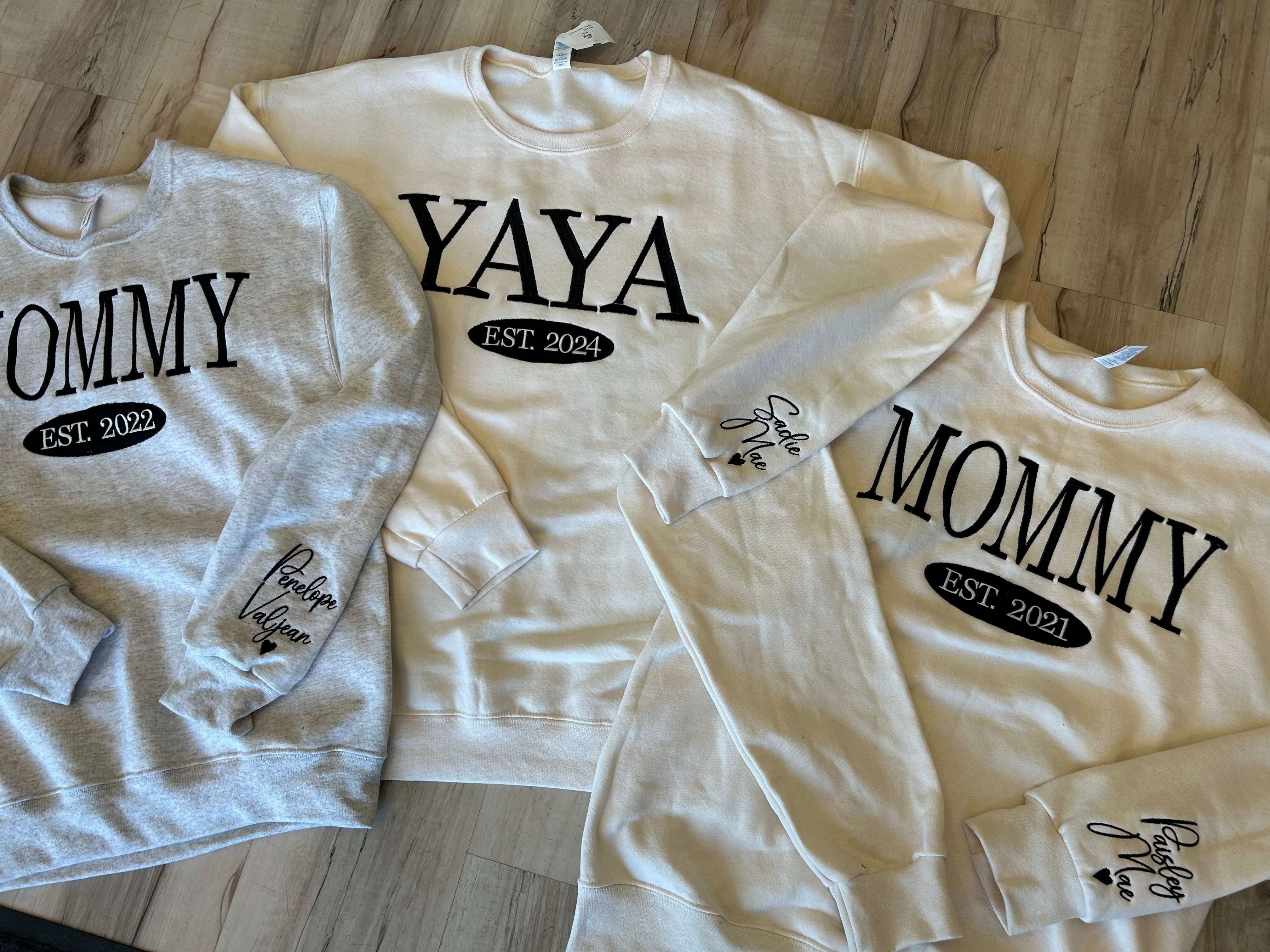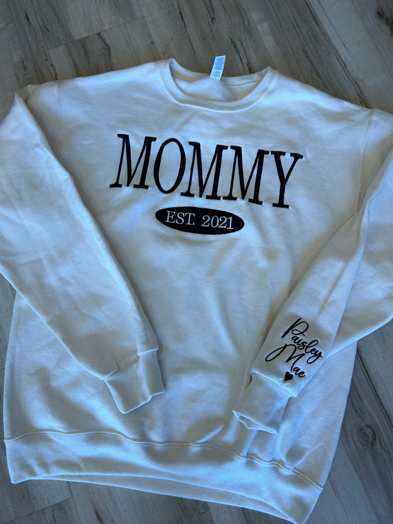 Custom est. Mama (name)Sweatshirt is backordered and will ship as soon as it is back in stock.