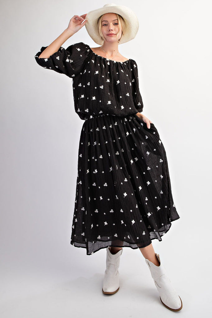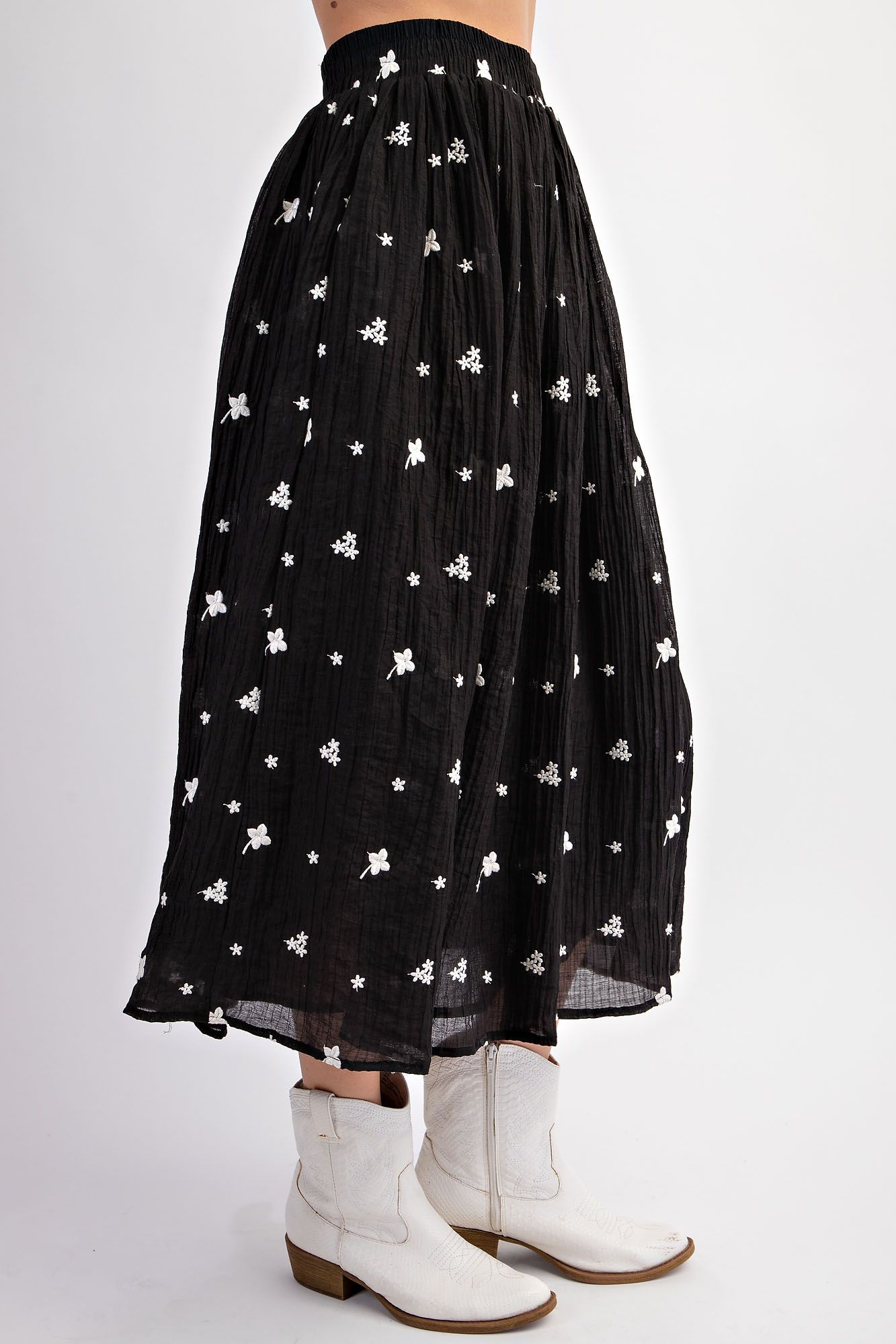EASEL PUFF SLEEVES EMBROIDERY POLY CREPE SKIRT