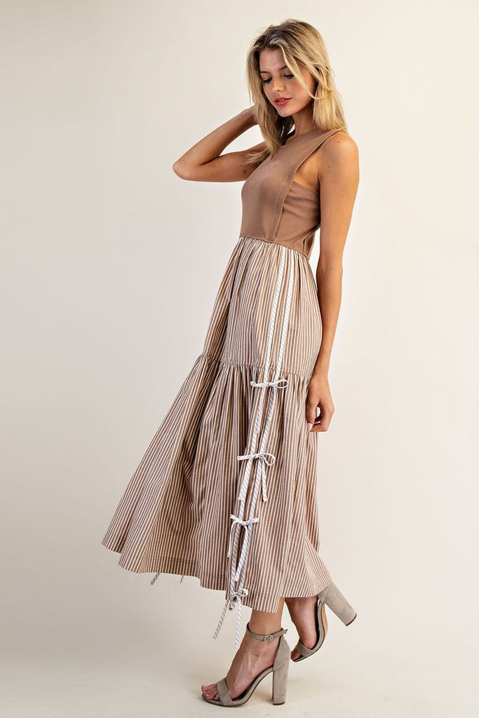ee:some Sleeveless Striped Side Bow Midi Dress