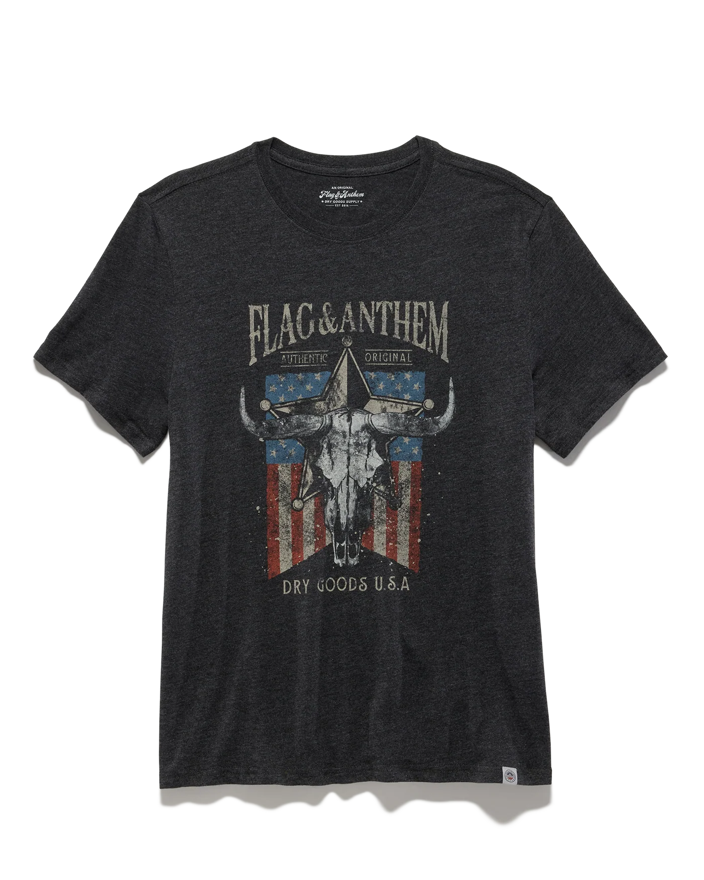 Bold style meets all-day comfort in our Americana Bull Skull Tee. Made from a lightweight and breathable cotton blend fabric that’s soft to the touch, this ultra comfortable crewneck features all-original Flag & Anthem graphic artwork inspired by our favorite vintage tees. Tailored athletic fit.