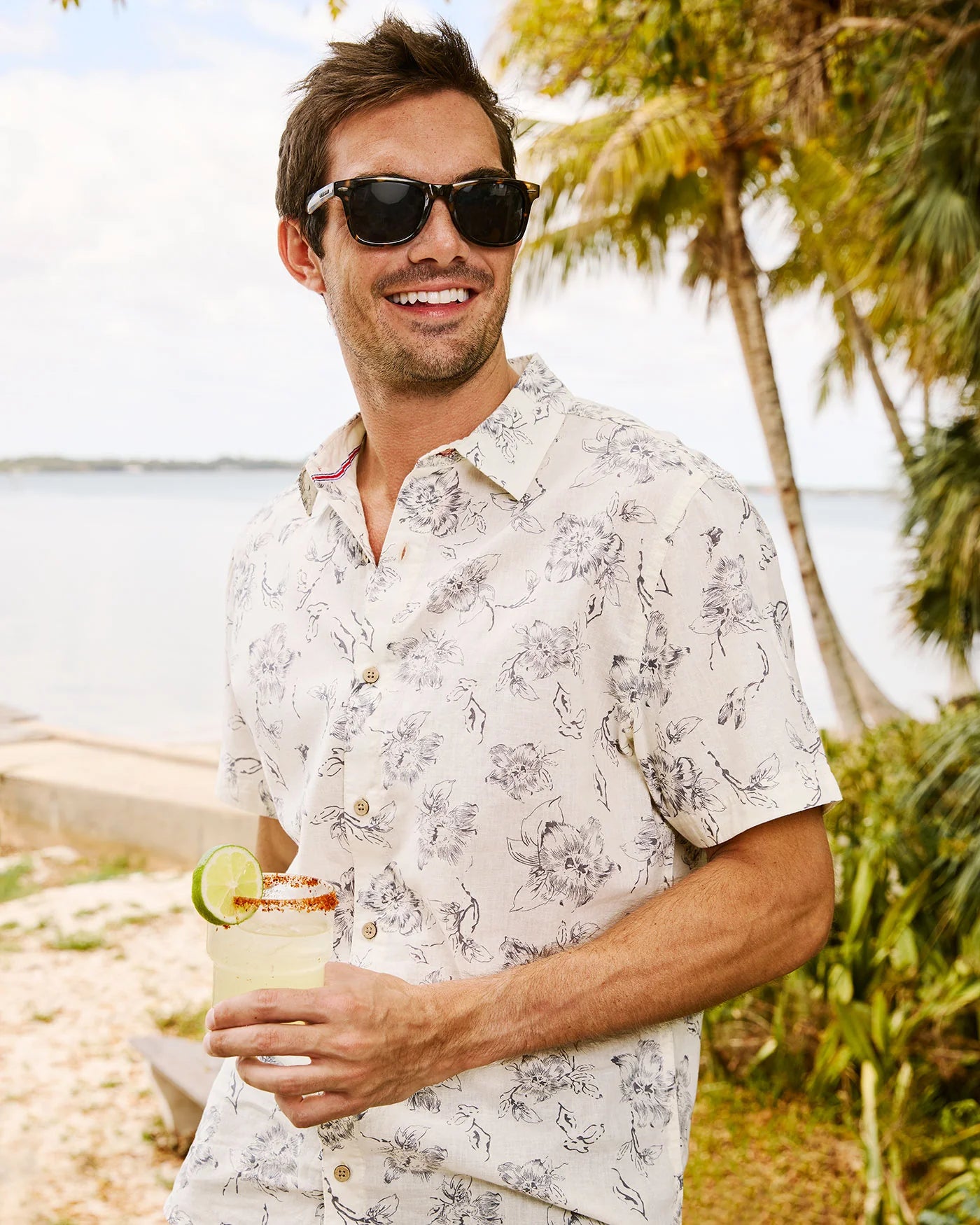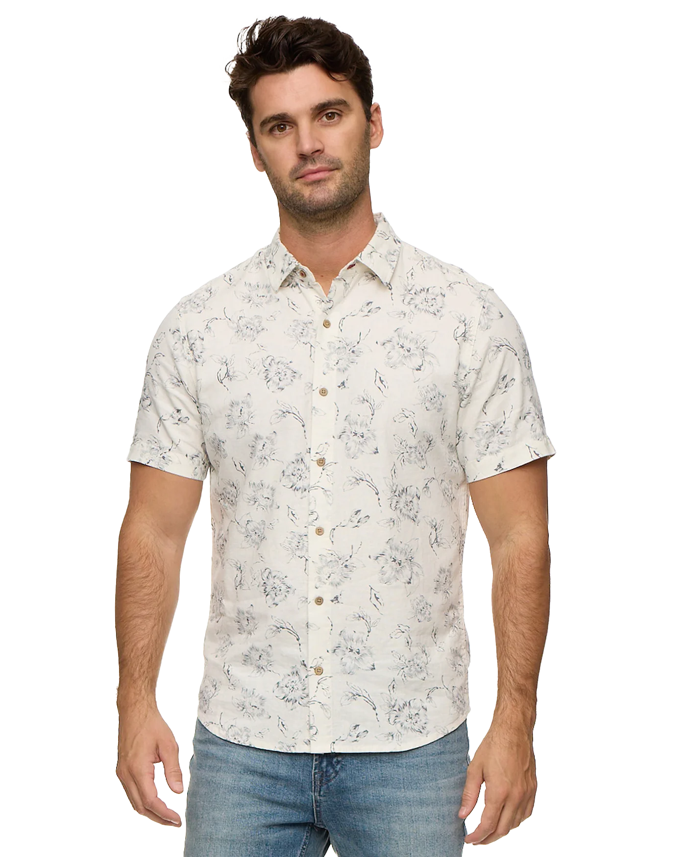 Perfect for beach days, getaways, and everything in between; our Newville Floral Print Linen Shirt is your go-to for all-day comfort and effortless warm-weather style. Made from a lightweight and breathable linen blend fabric that helps you stay cool, you can dress it up or keep it casual depending on the occasion. Contrast chambray fabric inside collar stand, back yoke, front placket, and sleeve cuffs. Button closures. Tailored athletic fit.