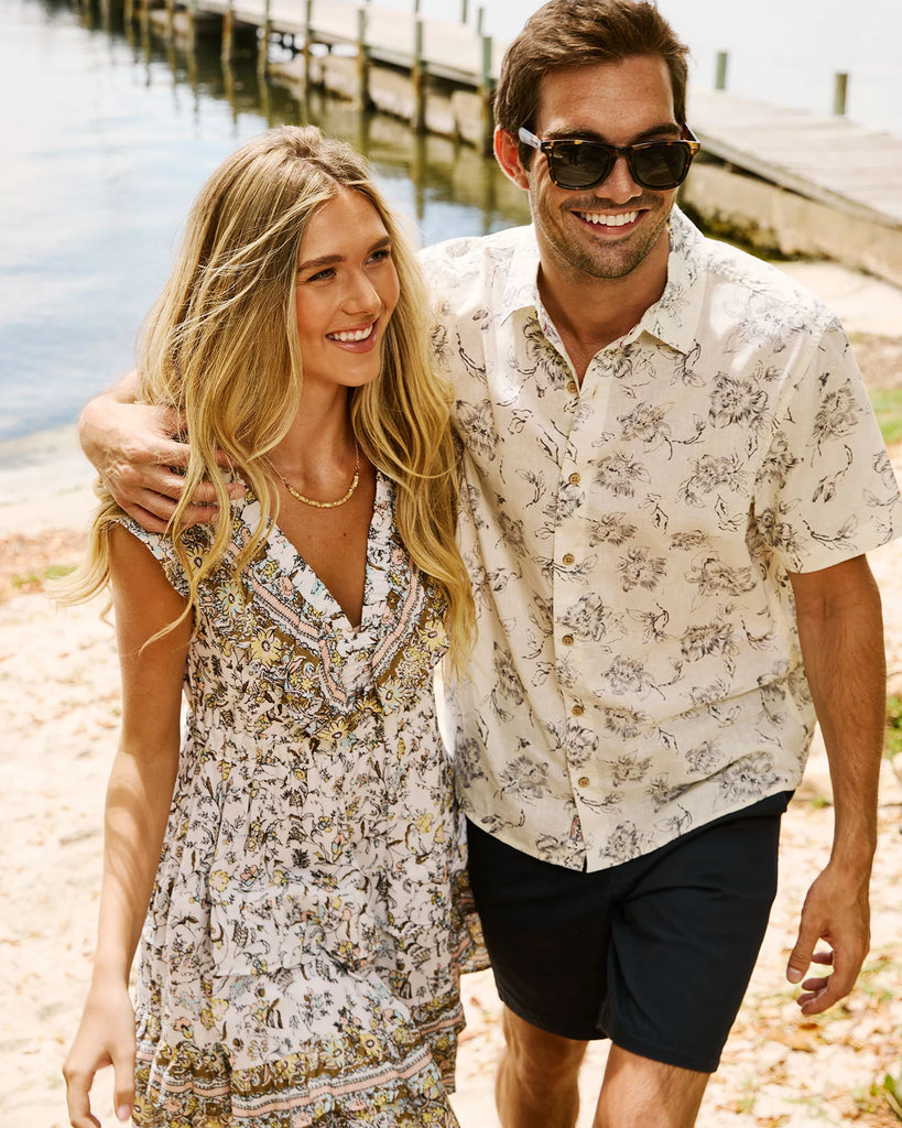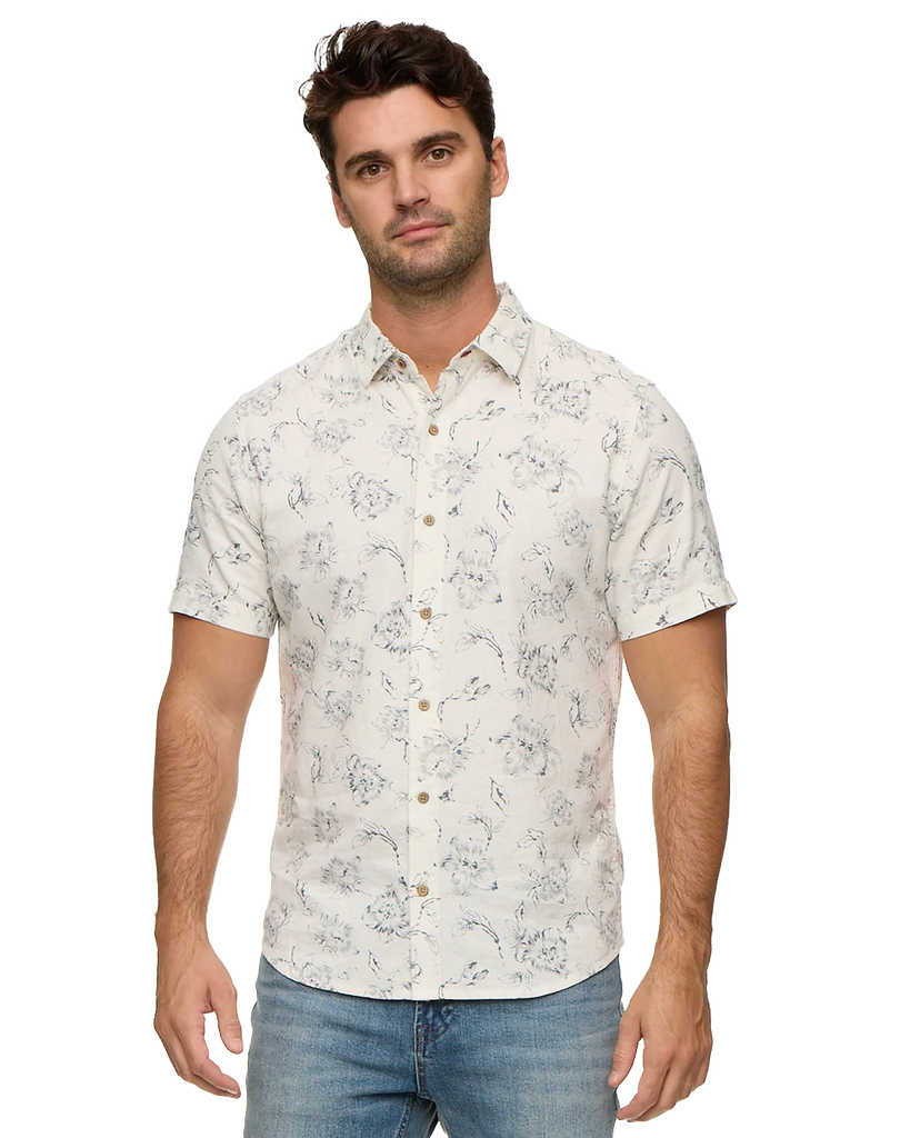 Flag & Anthem Newville Floral Print Linen Shirt - Cream/Charcoal