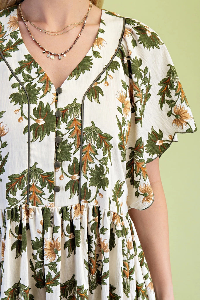 Step into autumn with charm wearing the GiGio Fall Floral Printed V-Neck Midi Dress. Its playful scalloped short sleeves add a flirty touch, while the flattering V-neckline and midi length create effortless elegance. Perfect for twirling through crisp fall days or cozy gatherings, this dress brings floral fun to cooler seasons.
