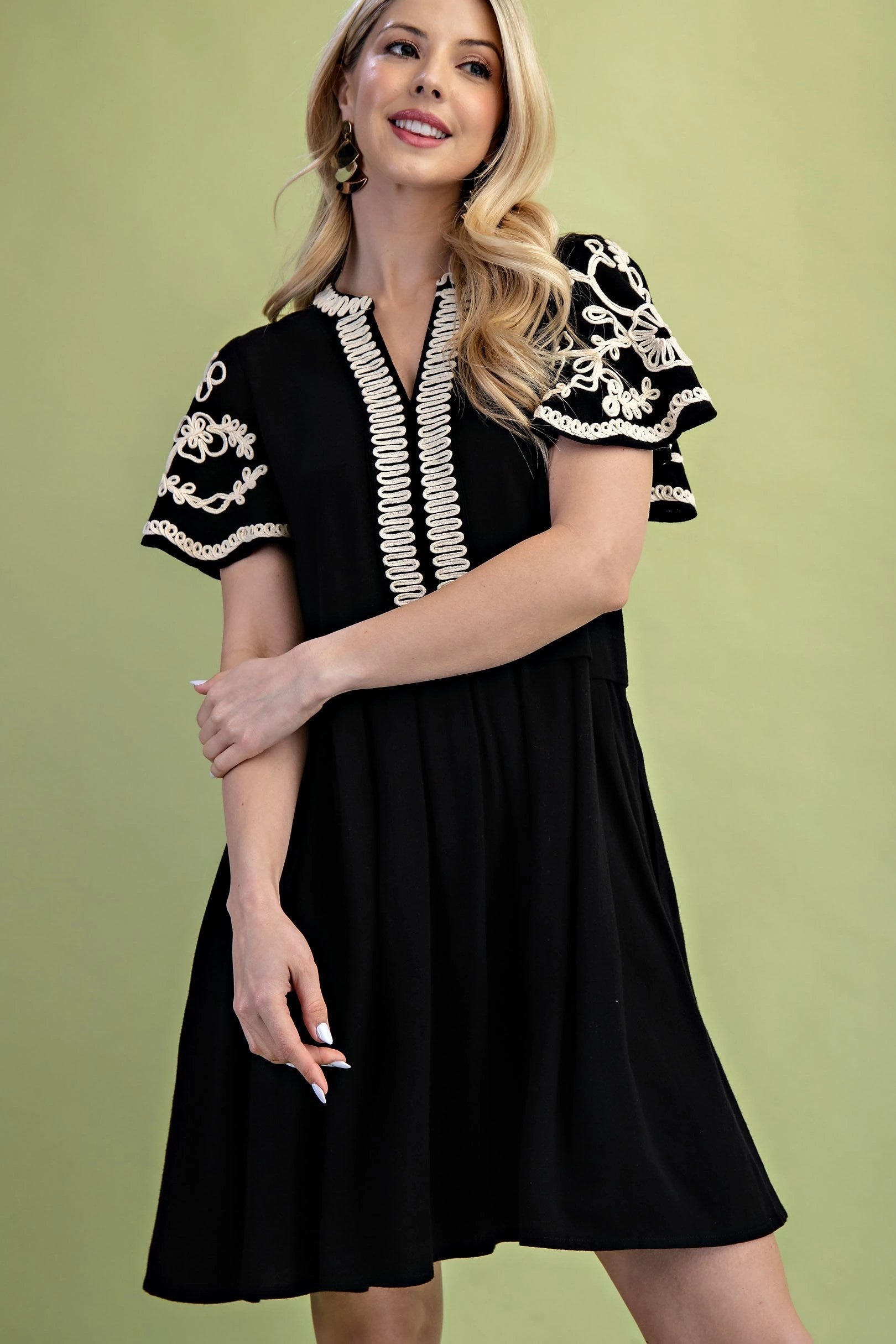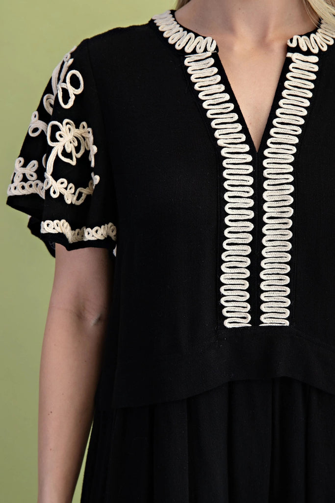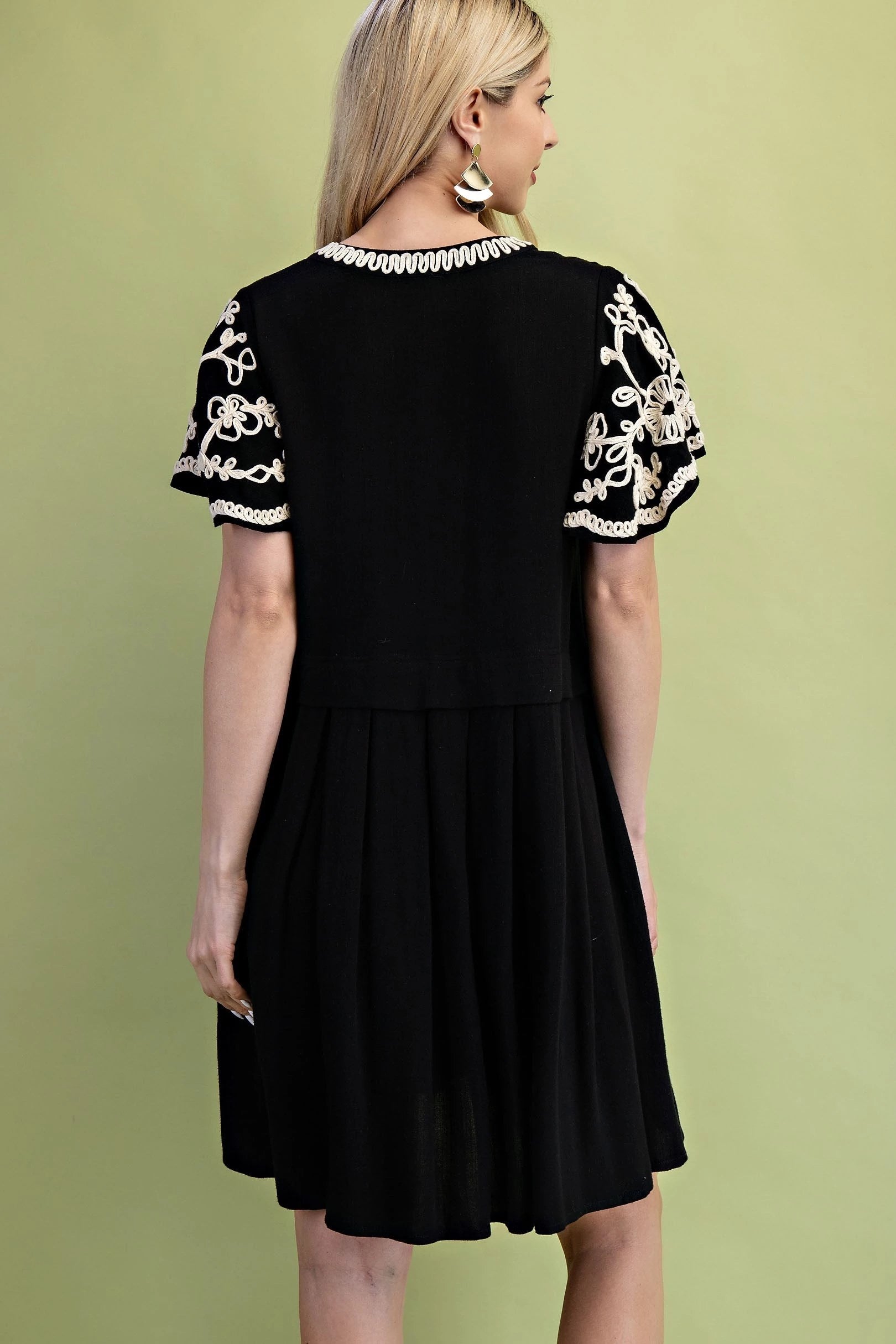 GiGio Linen Embriodered Flutter Sleeve Dress