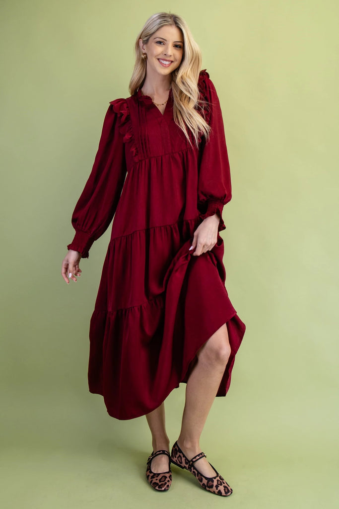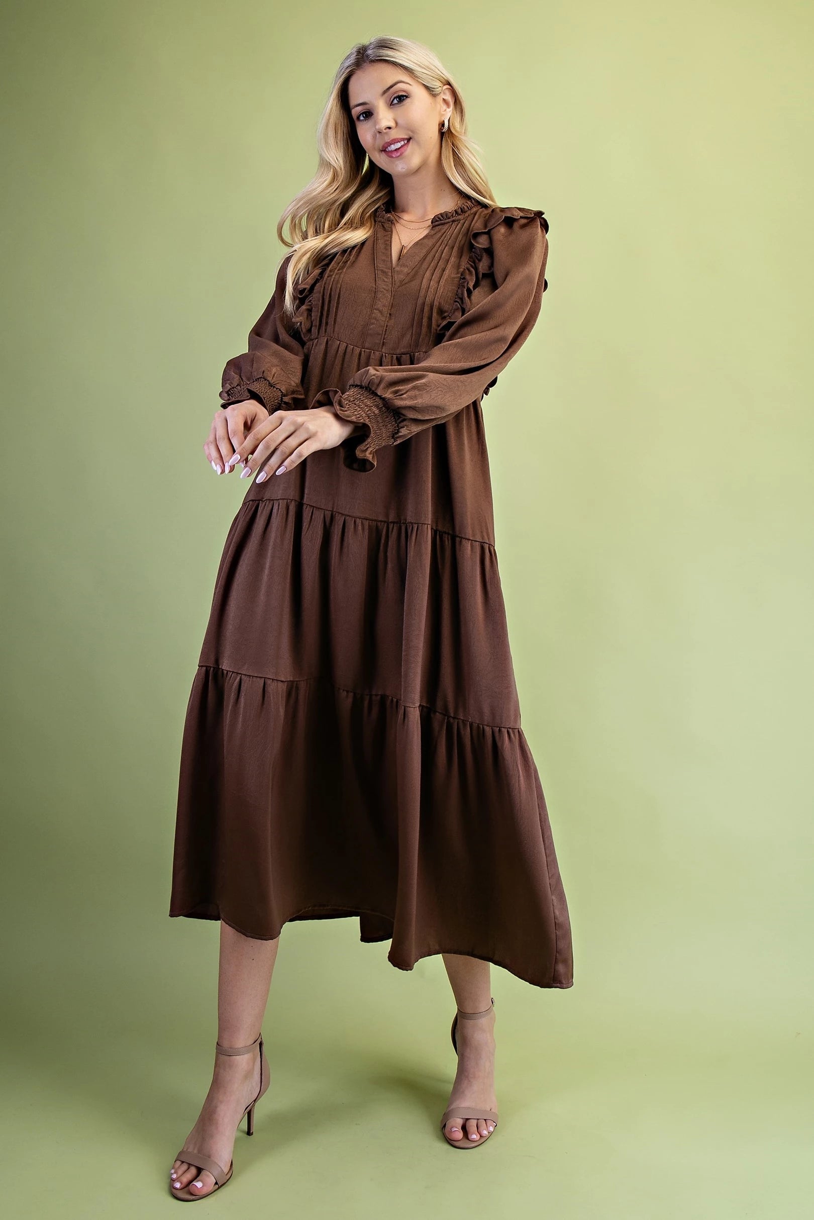 GiGio Long Sleeve Tiered Dress Midi Dress