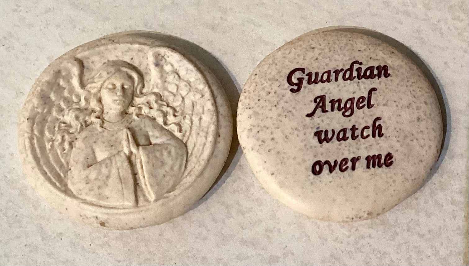 Small pocket stone with etched Guardian Angel.