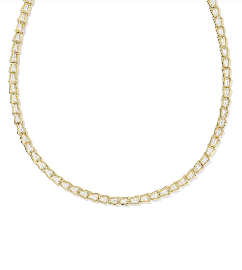 A jewelry classic, now with even more shine. Meet the Bella Gold Tennis Necklace, a stunning strand designed with cubic zirconia stones in a tapered baguette shape for dimensional sparkle. Wear this necklace solo for a chic and minimal look, or try layering it with your other favorite necklaces for a maximalist moment.