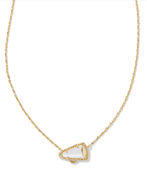 Give me a K! Give me an S! Give me a Cheer Gold Short Pendant Necklace in White Mother-of-Pearl! Minimal but full of cheer, this adorable megaphone pendant is framed by our signature hoofprint detailing for that special KS touch. Stack up some extra spirit and pair this pendant with styles in your team’s colors.