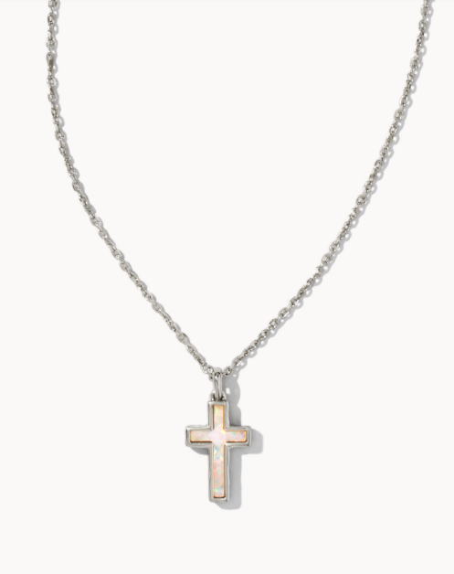 Kendra Scott Cross Gold Pendant Necklace in White Opal In Silver