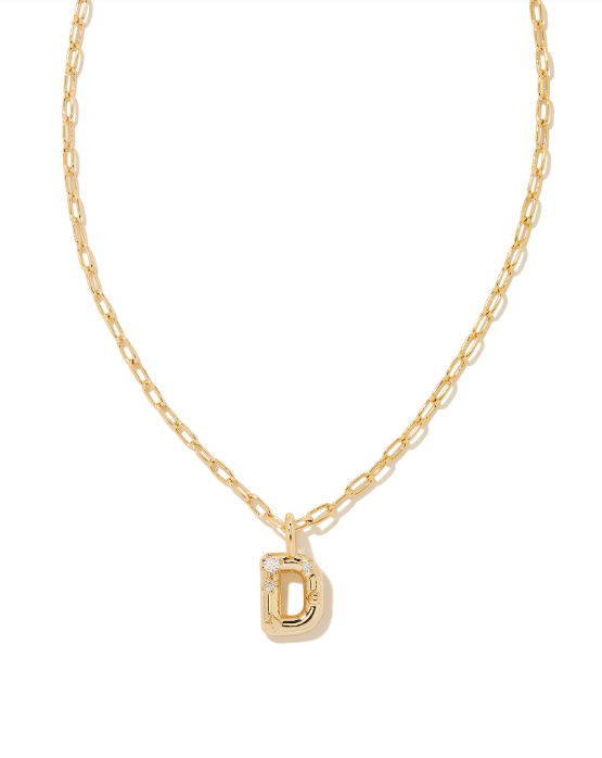 Kendra Scott Crystal Letter Gold Short Pendant Necklace