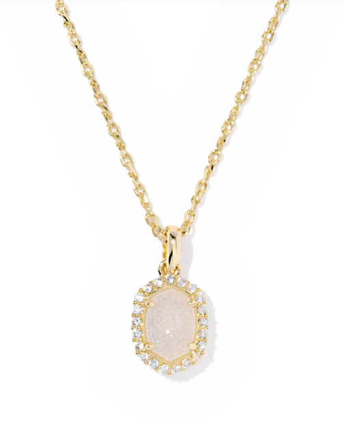 Kendra Scott Daphne Gold Crystal Frame Short Pendant Necklace In Iridescent Drusy