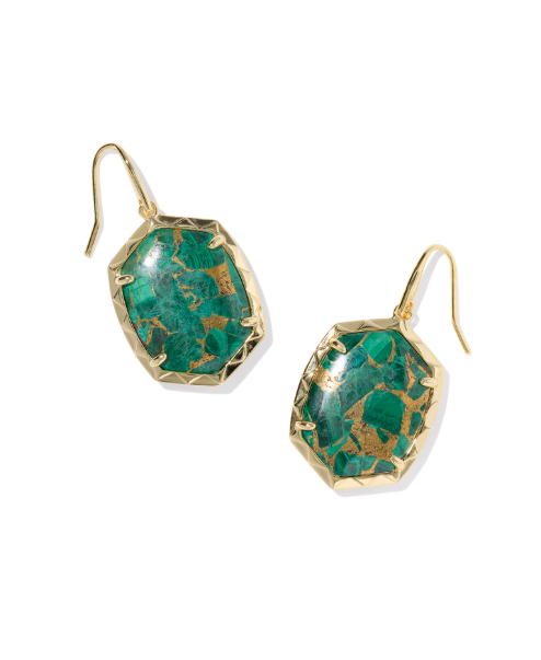Kendra Scott Daphne Gold Drop Earrings In Bronze Veined Green Malachite