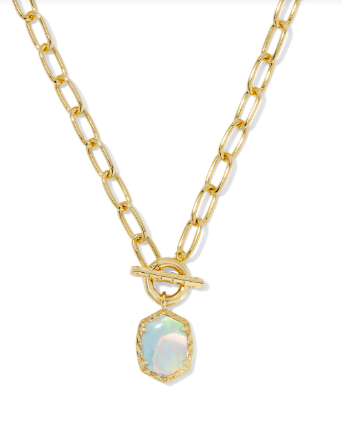 Kendra Scott Daphne Gold Link and Chain Necklace in White Opalescent Resin