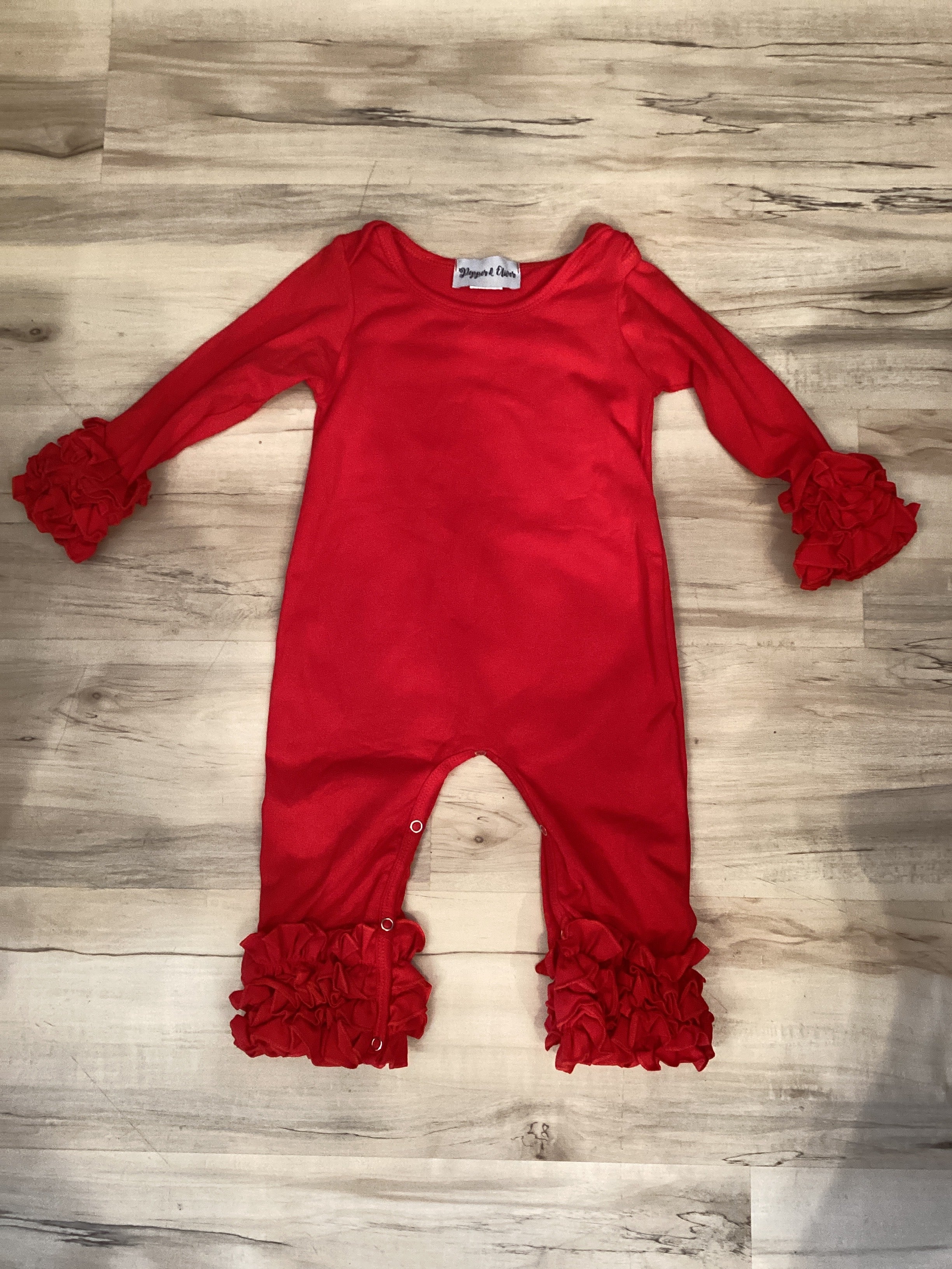 Elevate your little one's style with our P&O icing long Romper in Red#37. Made from soft and comfortable cotton, this romper offers the perfect option for a monogram. Stay on trend with this must-have fashion piece.