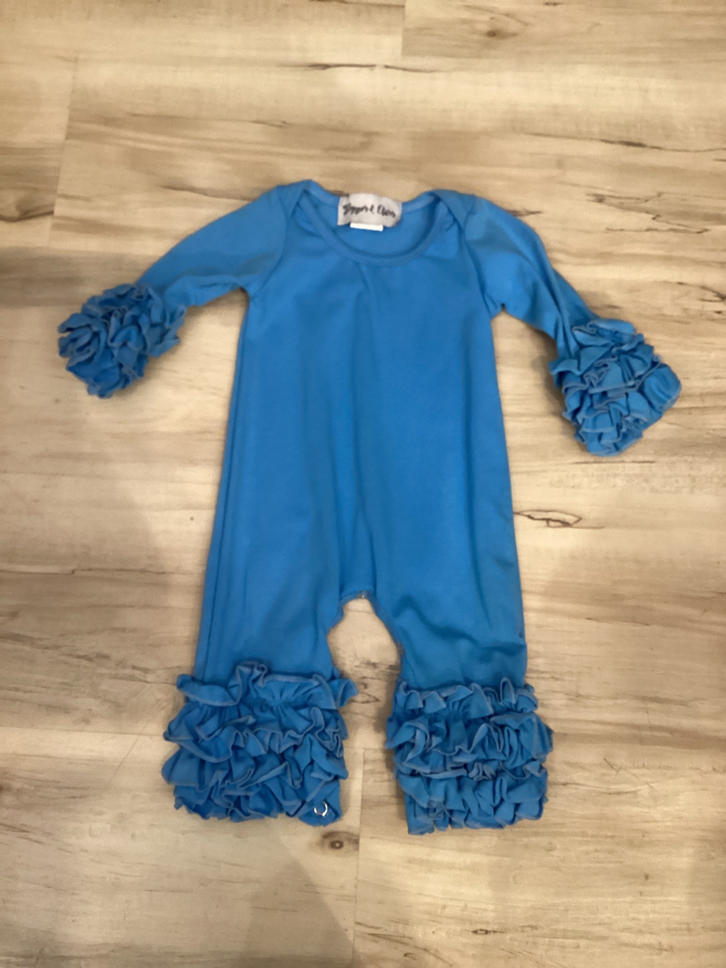 Introducing our P&O Icing Long Rompers in Cornflower. Made with soft cotton and featuring an optional monogram, these rompers offer both comfort and personalization for your little one. Perfect for playtime or special occasions. Upgrade your child's wardrobe today!