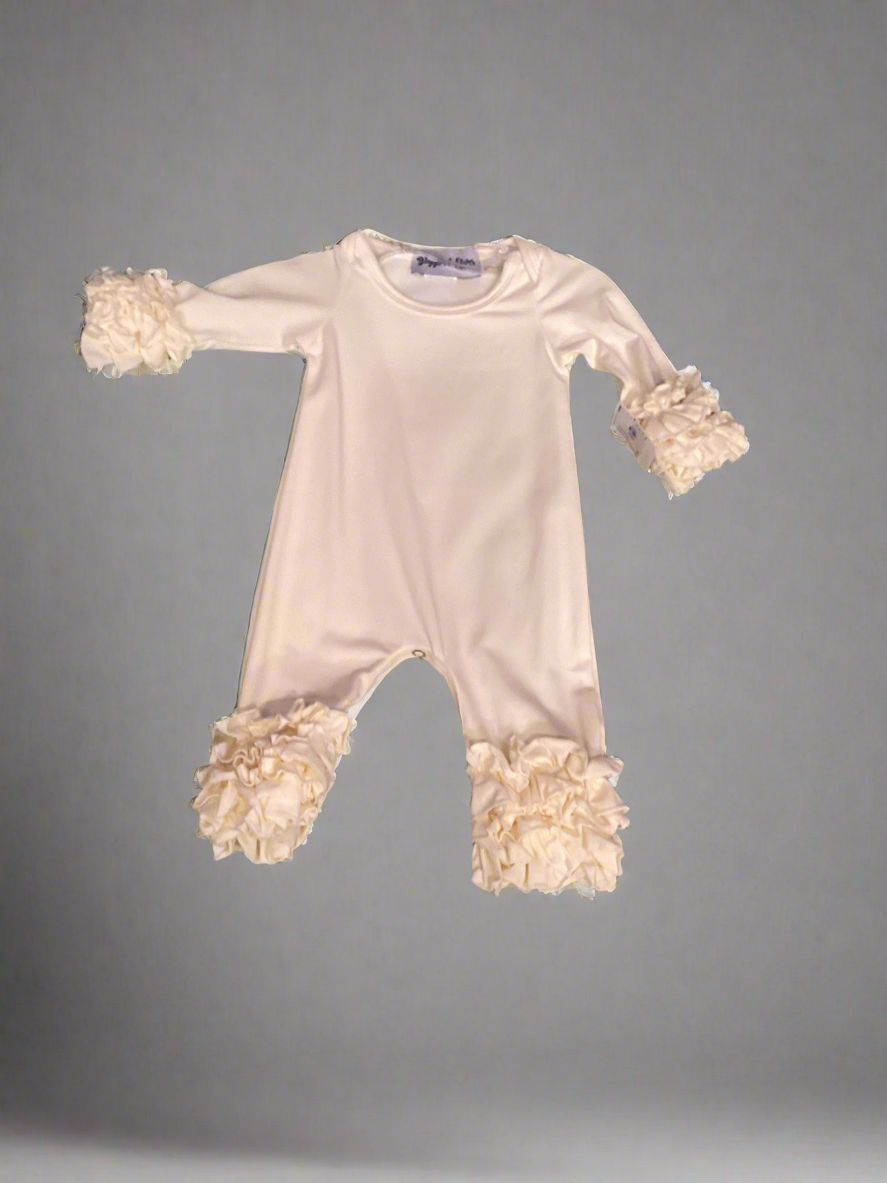 Expertly crafted and stylish, the P&O Icing Romper-Cream is made from 100% pure cotton for ultimate comfort. Its optional monogram adds a personalized touch. Stay cool and chic with this versatile romper, perfect for any occasion.