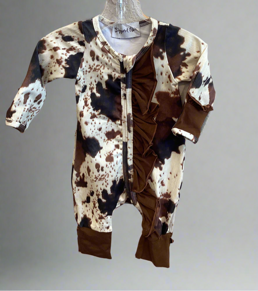 Ruffle Zipper Romper~Cow