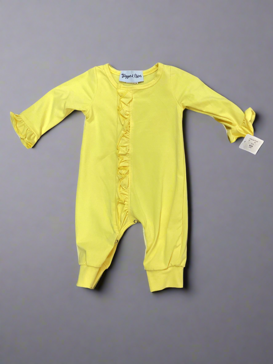 This Gold Ruffle Zipper Romper, crafted from soft cotton, offers both comfort and style for your baby. Its convenient zipper design allows for easy dressing and diaper changes, while delicate ruffle details add a charming touch. Ideal for everyday wear, this romper ensures your little one stays comfortable and fashionable all day.