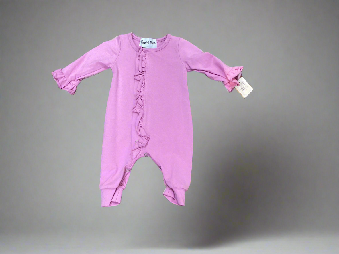 This cotton baby Ruffle Zipper Romper-Lilac features a functional zipper for easy dressing and a ruffle design for added cuteness. Made with high-quality materials, this romper provides comfort and style for your little one. Perfect for everyday wear or special occasions.