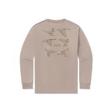 Breathable and lightweight, our SEAWASH™️ - Field Sketches long sleeve tee features an assortment of custom drawn fowl on the back and a handy front pocket. Made for comfort and all day wear, this tee is perfect for layering with our fleece pullovers and canvas jackets.