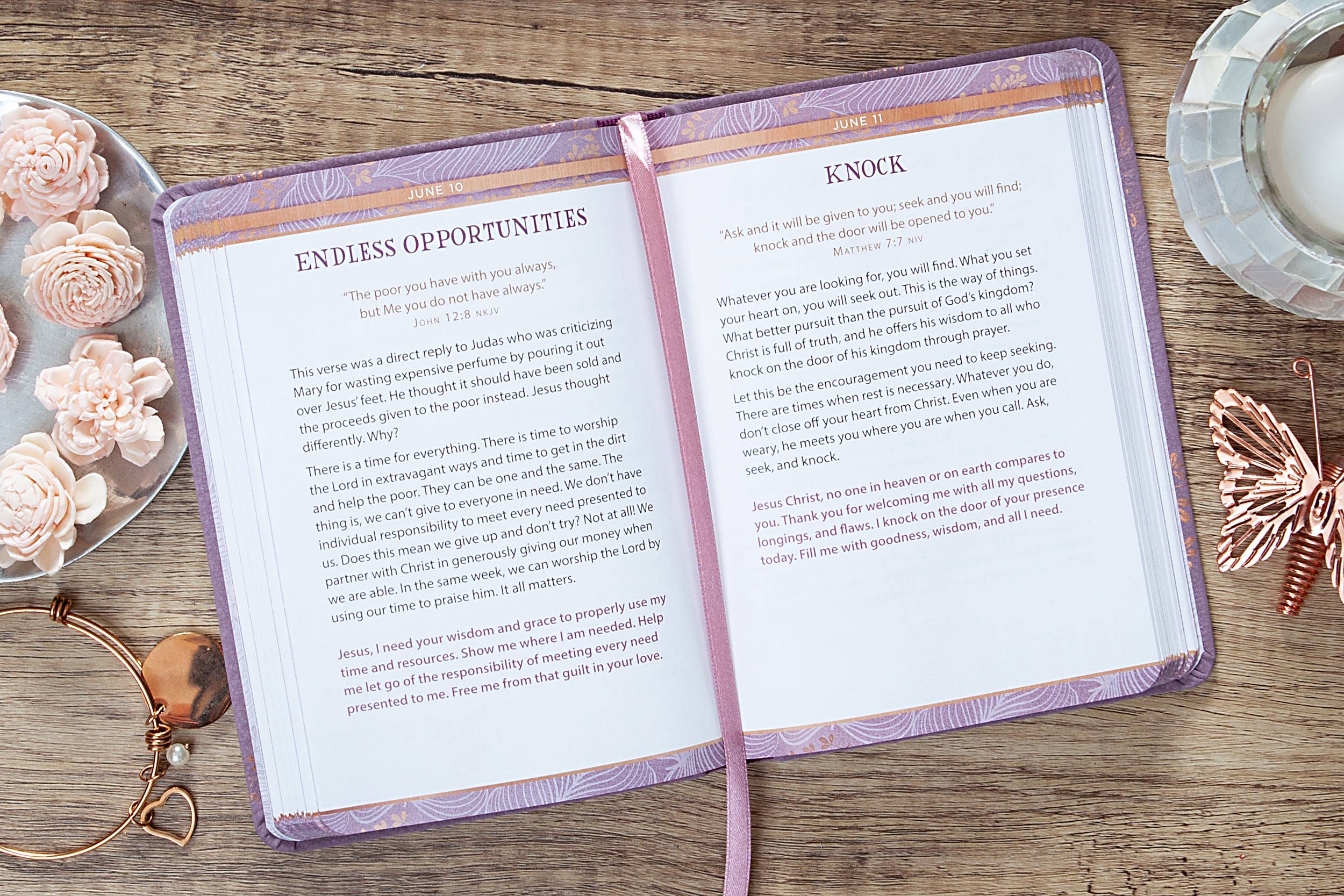 This devotional takes you through the words of Jesus spoken when he walked the earth. As you quiet yourself and meditate on these Scriptures, devotions, and prayers, you will discover the many facets of his character. Experience his goodness, faithfulness, compassion, and perfect peace. Spend each day listening for his still, small voice. Let him guide you with his wisdom, encourage you with his love, and fill you with confidence as he speaks purpose over your life.