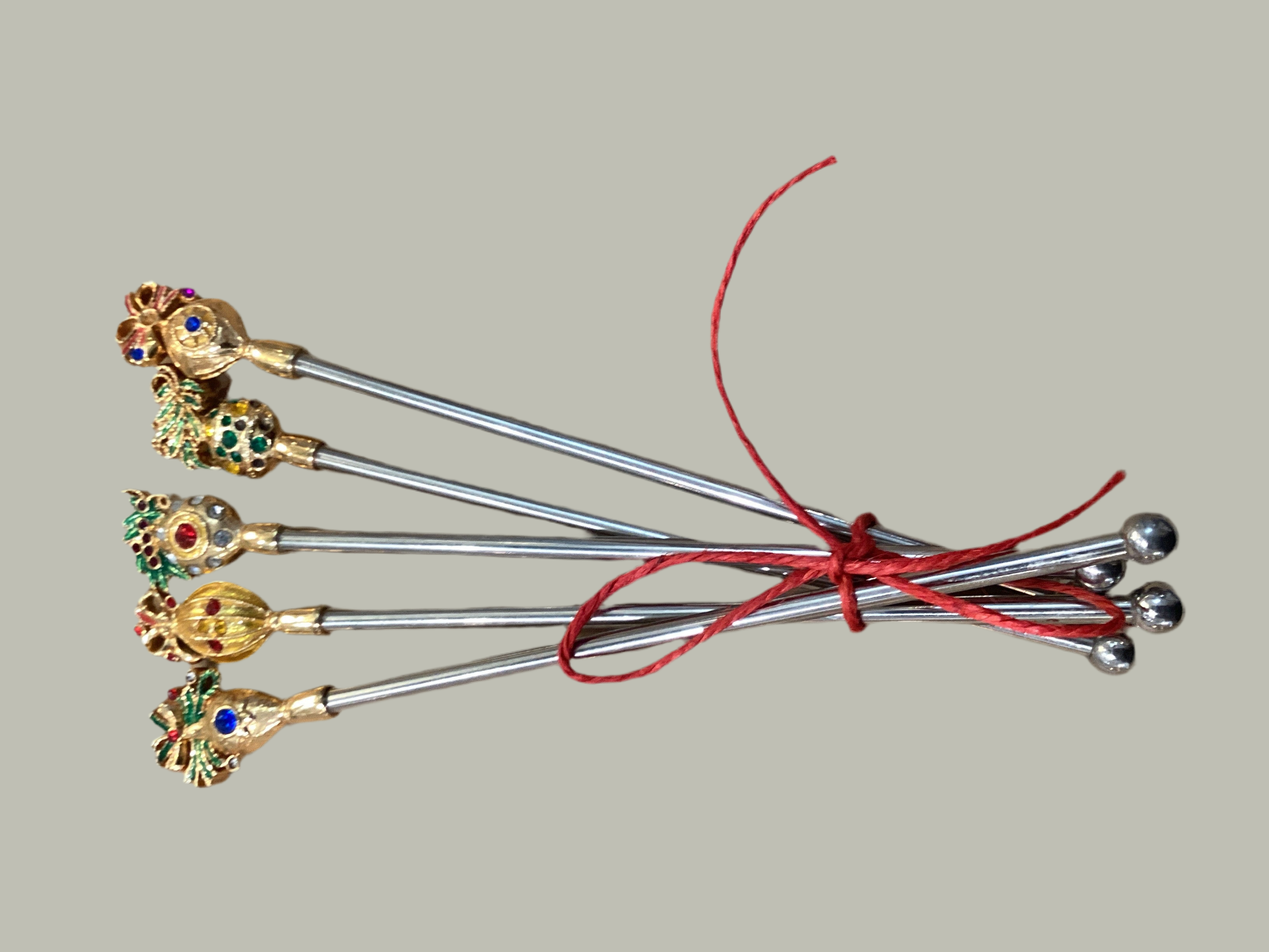 Expertly crafted with stainless steel and adorned with rhinestones, these drink stirrers from The Bombay Company add a touch of elegance to any holiday gathering. Each set includes five stirrers, making them perfect for entertaining guests. Elevate your drink presentation with these beautiful and functional stirrers.