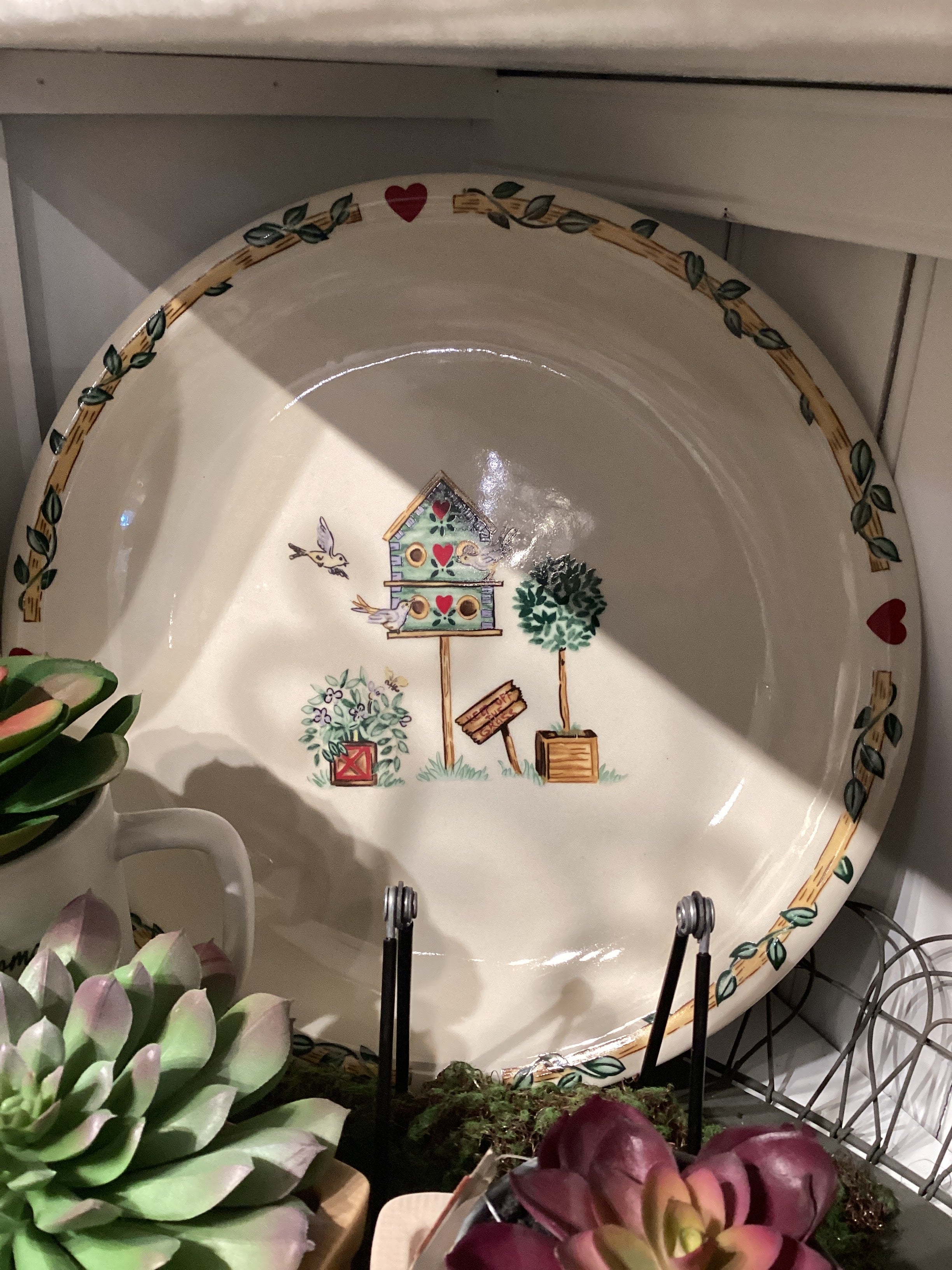 Thomson Pottery Platter Bird House 12 1/4" Large Round Serving Plate
