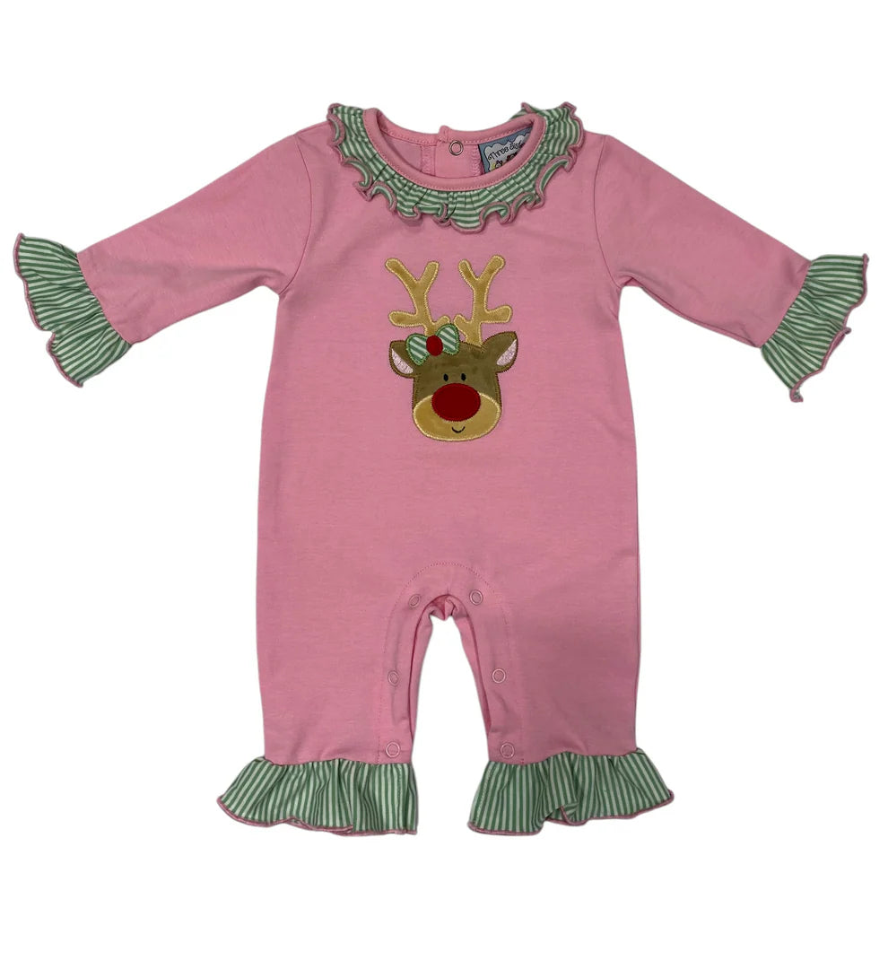 Three Sisters Reindeer Applique Romper - 3M is backordered and will ship as soon as it is back in stock.