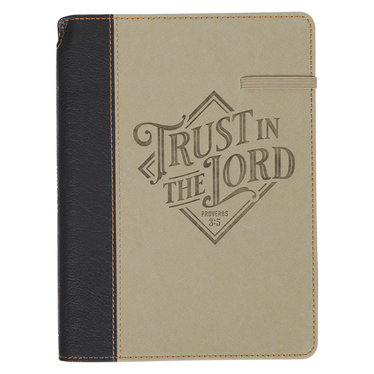 Trust in the Lord Black and Sand Faux Leather Classic Journal with Pen Holder - Proverbs 3:5