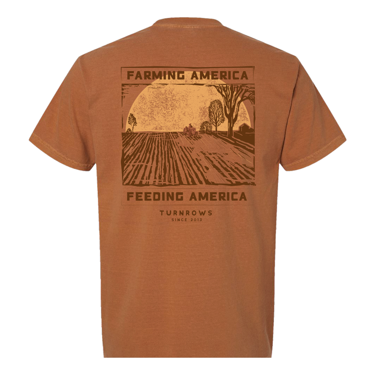 This tee features a rustic, vintage-inspired farm scene, capturing the essence of hard work and harvest. Printed on a 100% cotton tee, the rich, earthy tones complement the bold, weathered graphic, giving it a timeless, lived-in feel.