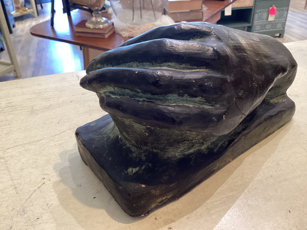 This vintage "Resting Hand" is a unique and intriguing piece, possibly representing Alexander the Great. Crafted with careful detail, this resting hand will add an artistic touch to any setting. Its historical significance and timeless design make it a must-have for any collector or history enthusiast.