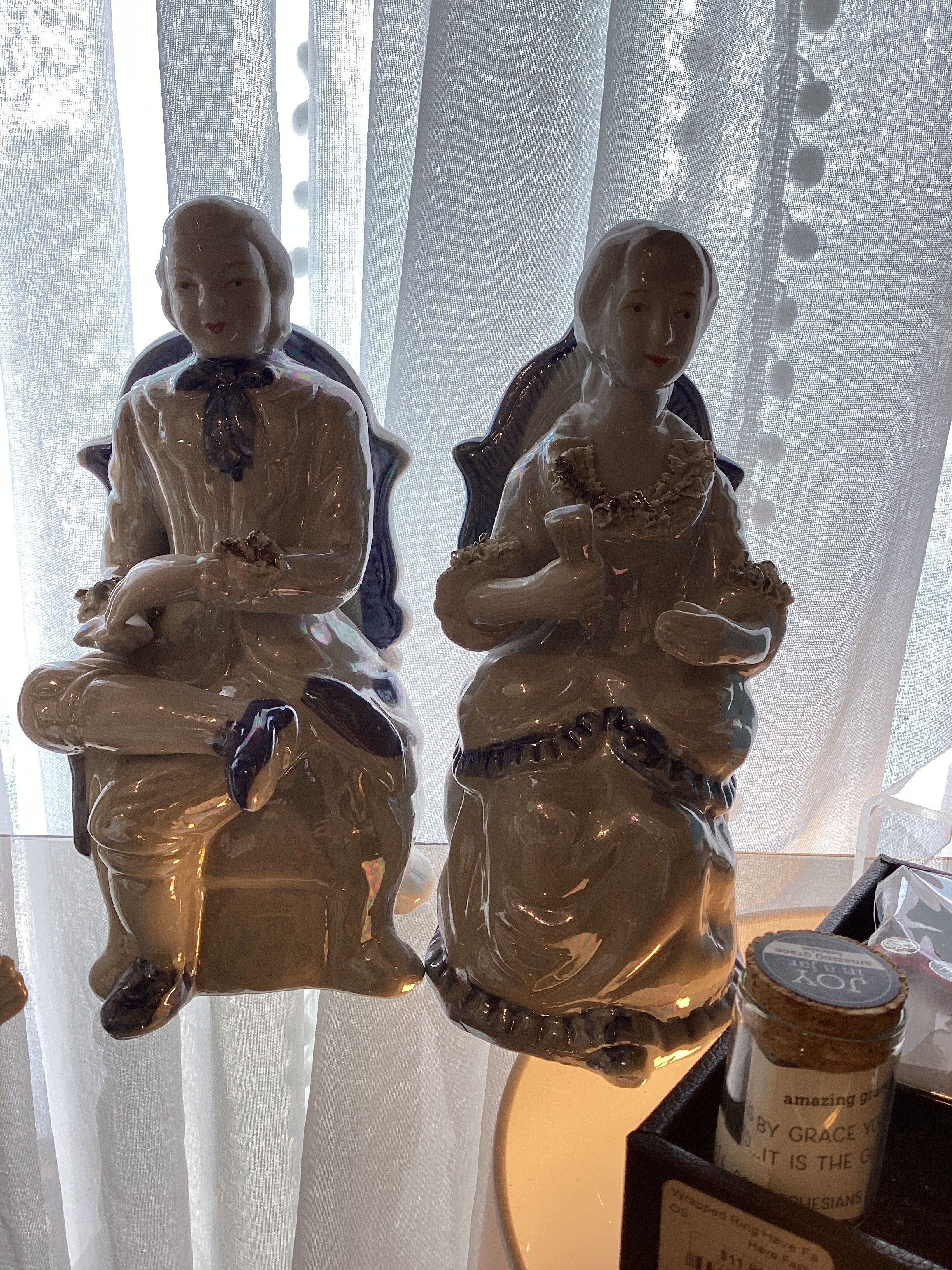 Add a touch of vintage charm to your home decor with these stunning VTGE Male & Female Victorian Figurines. Crafted with intricate details, these 8" figurines boast a beautiful blue and white design with gold trim, making them a must-have for any collector. Perfect for adding a touch of elegance to any room.