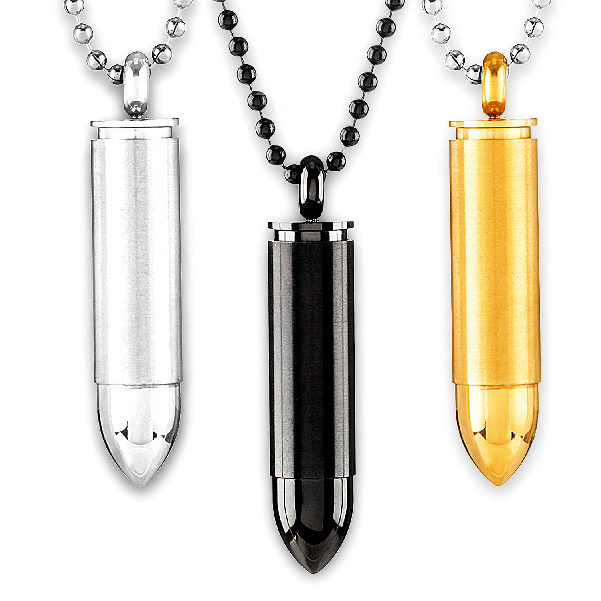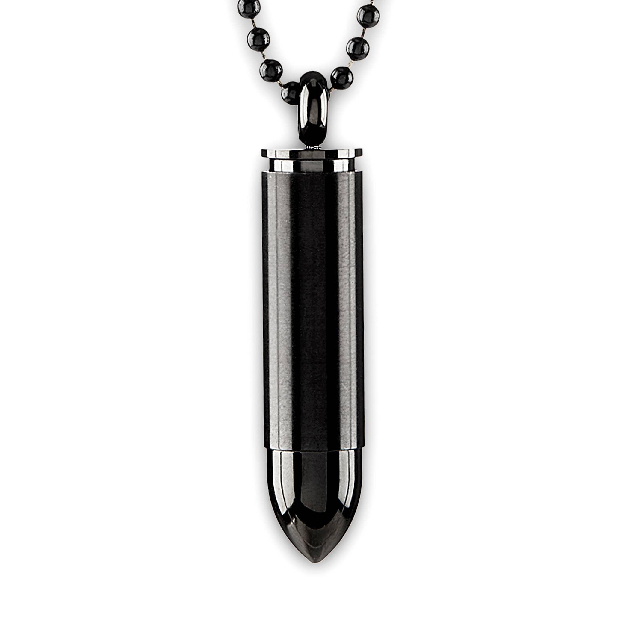 Display a unique style with this dual finish stainless steel bullet pendant.