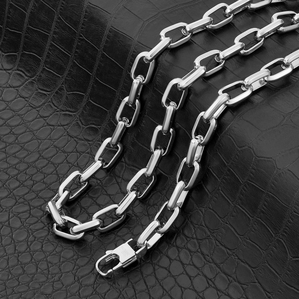 The large rounded Invicta Jewelry Men's Beveled Edge Large Nautical Oval Link Chain Necklace will pair perfectly with your favorite accessories. The heavy stainless steel link necklace fastens with a lobster clasp. The 10 millimeters width link chain has a length of 24 inches and is available in two color options.