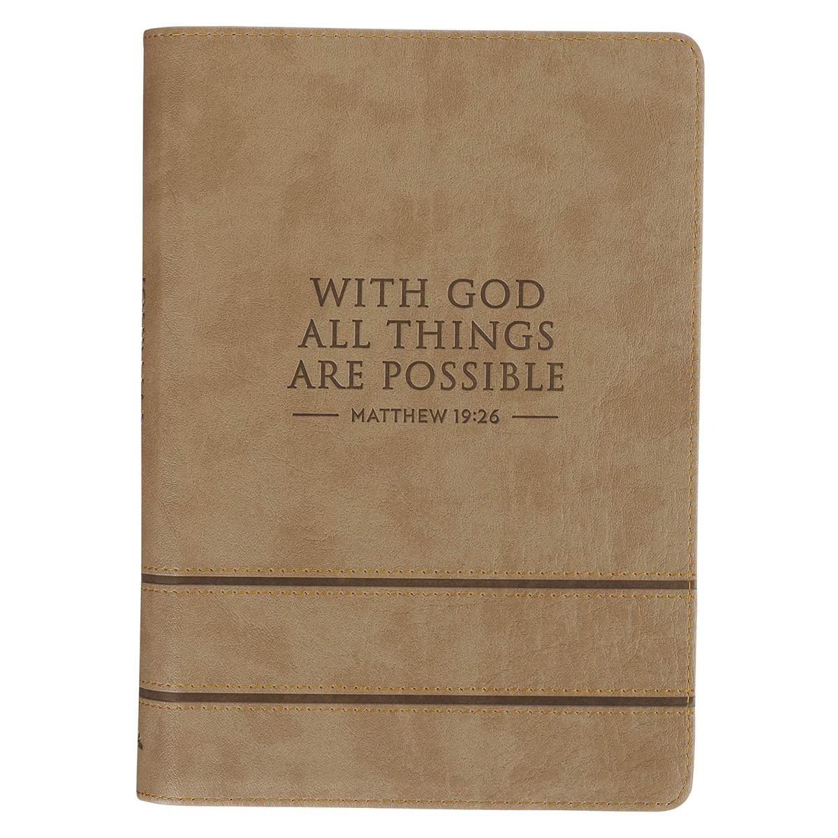 With God All Things Are Possible Tan Faux Leather Journal with Zipper Closure - Matthew 19:26